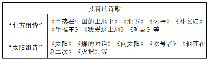 本题考查对艾青诗歌作品的掌握情况,其诗歌创作可分为两组,如图所示,可知本题为ABCDE。