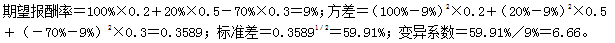 某公司目前面临一个投资机会,该项目所在行业竞争激烈,如果经济发展迅速并且该项目搞得好,取得较大市场占有率,利润会很大,否则利润很小甚至亏本。假设未来的经济情况只有3种:繁荣、正常、衰退,出现的概率分别为0.2、0.5、0.3,期望报酬率分别为100%、20%、-70%,则下列各项不正确的是( )。