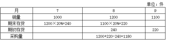 某批发企业销售甲商品,第三季度各月预计的销售量分别为1000件、1200件和1100件,企业计划每月月末商品存货量为下月预计销售量的20%。下列各项预计中,不正确的是( )。