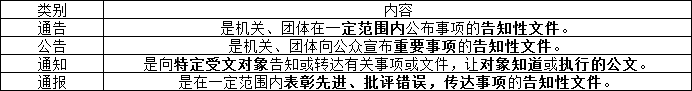 本题考查公告、通告、通知、通报的共同点,根据概念中的关键词可知: