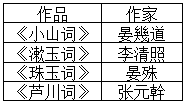 晏幾道,字叔原,号小山。与其父晏殊并称“二晏”。下列作品属于晏幾道的是( )