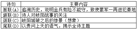 下列《岐阳》诗句中,写金兵有险不能守,致使蒙军一再进犯的是( )
