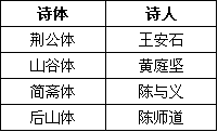 选项中诗体对应的诗人如下: