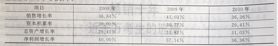 除净利润增长率以外,其他各项指标均保持一个比较稳定的增长,同时增长率也较高。但是在销售高速增长的情况下,公司的净利润增长率2010年比2009年却有所下降,因此企业应从成本费用方面入手进行分析,以便进一步降低成本费用,保持净利润增长率和销售增长率之间稳定的同步增长。除此以外,该企业在发展能力上问题不大。