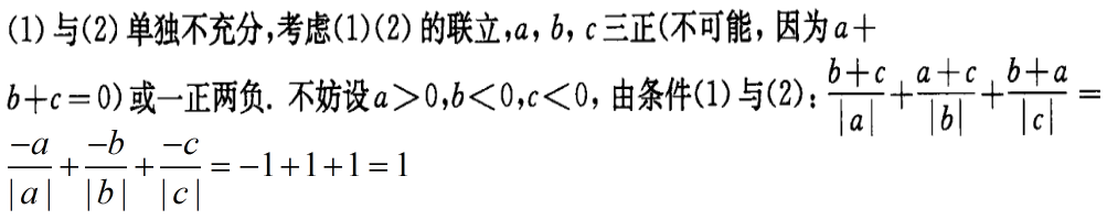 条件(1)和(2)单独都不充分,但条件(1)和条件(2)联合起来充分。