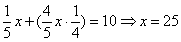 某人需要处理若干份文件,第1小时处理了全部文件的1/5,第2小时处理了剩余文件的1/4,则此人需要处理的文件数为25份.