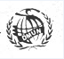 联合国的徽记,是一个以北极为中心、方位角等距离的世界地图投影平图。地图的陆地为淡蓝色、水域为白色,其8条经线延伸至南纬60度,纬线由5个同心圆表示。整个图案由两根交叉的金色橄榄树技组成的花环相托,象征联合国是一个维护世界和平的国际组织。