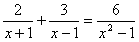 ,两边同时乘(x+1)(x-1)得:2(x-1)+3(x+1)=6,解得:x=1,是增根,方程无解,故选E。
