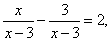 两边同时乘x-3得:x-3=2x-6,x=3,是增根,无解,故选E。
