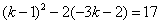 关于x的一元二次方程x²-(k-1)x-3k-2=0两个实数根的平方和是17,则k=( )