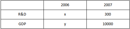 2007年,某市的全年研究与试验发展(R&D)经费支出300亿元,比2006年增长20%,该市的GDP为10000亿元,比2006年增长30%,2006年,该市的R&D经费支出占当年GDP的( )