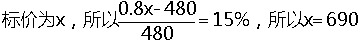 某商品的成本为480元,若按该商品标价的8折出售,利润率是15%,则该商品的标价为( )