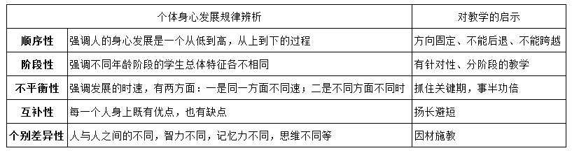 本题考查个体身心发展的规律。题干中反复强调“最佳期”,并启示教学要抓住最佳期,故结合下表,本题选C,不平衡性。