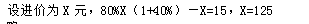 一家商店将某种服装按进价提高40%后标价,又以8折优惠卖出,结果每件仍获利15元,这种服装每件的进价是多少?()