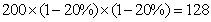 某商品的定价为200元,受金融危机的影响,连续两次降价20%后的售价为( )
