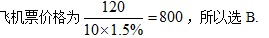 旅客携带了30kg 行李从首都机场乘飞机去上海,按民航规定,旅客最多可携行李20kg ,超重部分每公斤按飞机票价格的1.5% 购买行李票,现该旅客购买了120元的行李票,则他的飞机票价格应是( ).