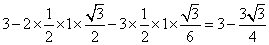 三个边长为1的正方形所覆盖区域面积为三个边长为1的正方形的面积减去中间边长为1 的等边三角形面积的2倍(中间部分多计算了2遍),再减去底边长为1,底角为