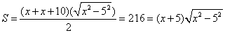 但是此方法是比较麻烦,因此实战中,令x=13,代入梯形面积公式得到面积为216即可说明该条件充分。故选D。