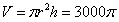 一个圆柱形无盖水桶,底面半径是10,高是30,则最多能装水的体积是( )