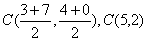 平面直角坐标系中点A(3,4),B(7,0),则线段AB的中点的C坐标是( )。