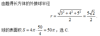 长方体的一个顶点上的三条棱的长分别为3、4、5,且它的八个顶点都在同一个球面上,这个球的表面积是( ).