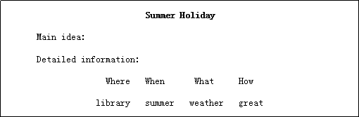 2.Report: Let students to write down plans of their own summer holiday with the key words and key sentences that they have learned today, 8 minutes later teacher invites some students to share the result of their reports.