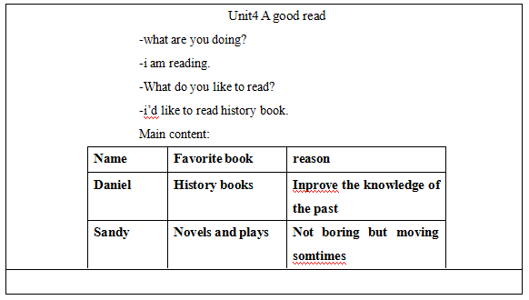 Ask students to do a survey on “what do you like to read and why”in a group of four ,then choose some repoters to report.