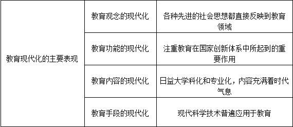 关于教育现代化的主要表现,总结如下表。