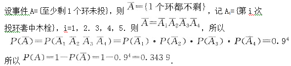 某人将5个环一一投向木栓,直到有1个套中为止.若每次套中的概率为0.1,则至少剩下1个环未投的概率是( )