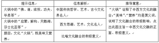 图画展示了一个热气腾腾的“文化火锅”,里面是各种各样的食材,如“佛”、“后现代”、“《梁祝》”、“爱因斯坦”。这些文化食材融合在一起之后变得无比美味和营养。图片背后的含义清晰可见:多元文化融合发展是这个时代的一个显著特征,对世界文化的传承和发展大有裨益。