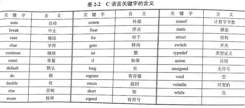 C语言中具有特殊含义的单词称为“关键字”,又称“保留字”。