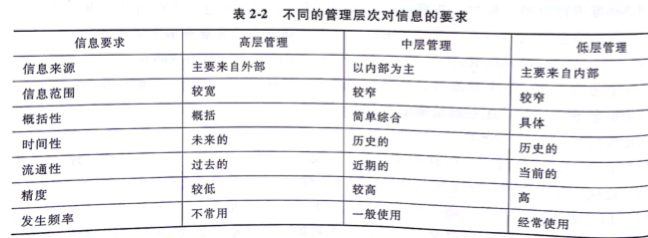 不同的管理层次需要不同层次的信息,高层信息大多数来自组织的