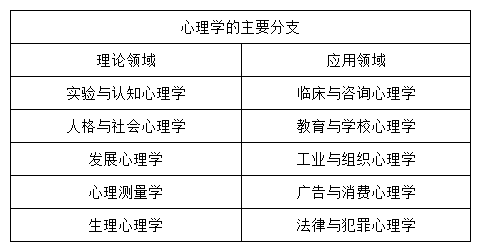 心理学的主要分支如下表所示: