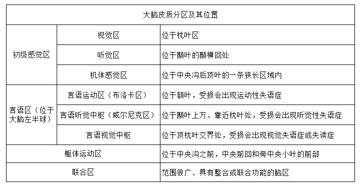 初级感觉区包括听觉区、视觉区和