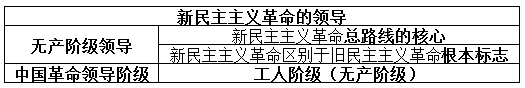 本题可从“总路线”、“核心”入手。新民主主义革命的领导相关解读详见下表: