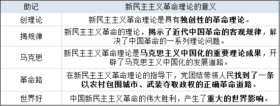 本题考核新民主主义革命理论的意义,可以参考下表辅助记忆。