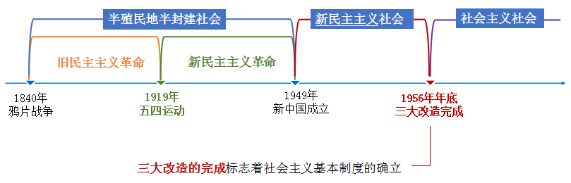 1956年年底,我国对农业、手工业和资本主义工商业的社会主义改造的基本完成,标志着中国历史上长达数千年的剥削制度的结束,标志着社会主义基本制度的确立。可以参考下图进行理解。