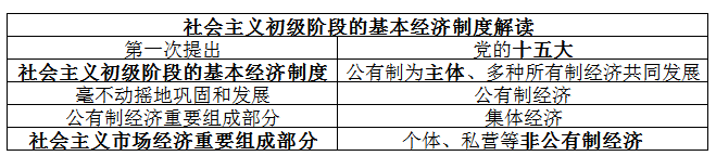 本题可从“基本经济制度”入手。社会主义初级阶段的基本经济制度相关解读详见下表: