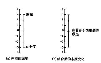 某人在看演唱会时发现崇拜的歌星所穿服装是自己看不惯的款式,从而觉得歌星没有原来那么完美,但那款服装也并没有那么讨厌,这种变化可以由( )理论得到解释。