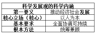 本题可从“核心”入手。科学发展观的科学内涵详见下表: