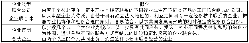 本题的破题点在于“存在一定生产技术经济联系的不同行业”、“生产不同类产品的工厂”和“联合”。