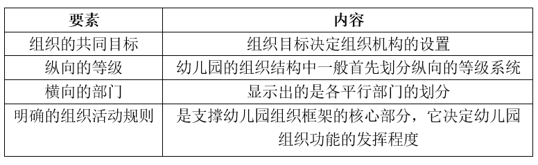 在幼儿园组织机构的各要素中,作为支撑幼儿园组织框架的核心部分,决定幼儿园组织功能发挥程度的要素是( )