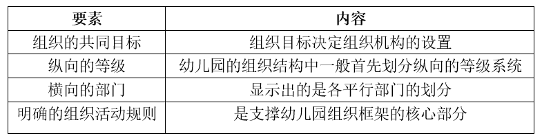 在幼儿园组织的四个因素里,( )显示出的是各平行部门的划分。