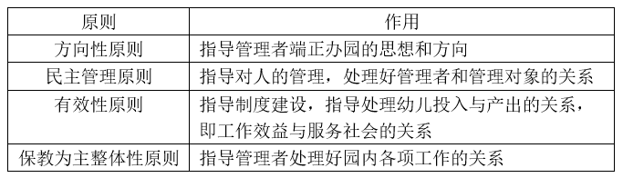 在幼儿园管理的基本原则中,( )的作用是指导管理者处理好园内各项工作的关系。