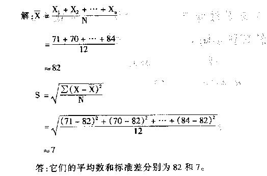 某组幼儿在一次语言能力测验中成绩如下:71,70,83,90,88,84,77,75,91,87,83,84。列出公式并求平均数和标准差(保留整数)。
