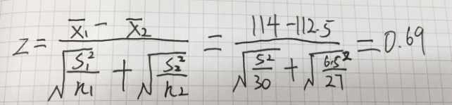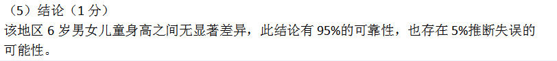 从某地区的6岁儿童中随机抽取男生30人,测得平均身高为114cm,标准差为5cm;抽取女生27人,测得平均身高为112.5cm,标准差为6.5cm。试问:该地区6岁男女儿童身高之间是否存在显著差异?