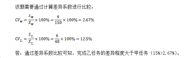 已知一组幼儿300人,测得其在规定时间内平均完成甲任务150次,标准差为4,平均完成乙任务48次,标准差为6。试比较该组儿童完成甲、乙任务的差异程度。