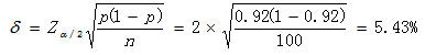 由此得到该批次产品合格率P的置信区间为:92%-5.43%<P<92%+5.43%,即86.57%<P<97.43%