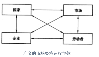 本题关键点为“广义”,广义的市场经济运行主体有四个,个人不包括在内,因此选D。