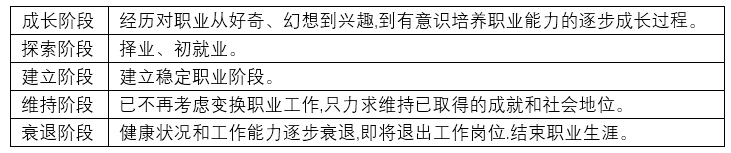 本题关键点为“萨柏”,萨柏把人的职业发展划分为五个大的阶段。